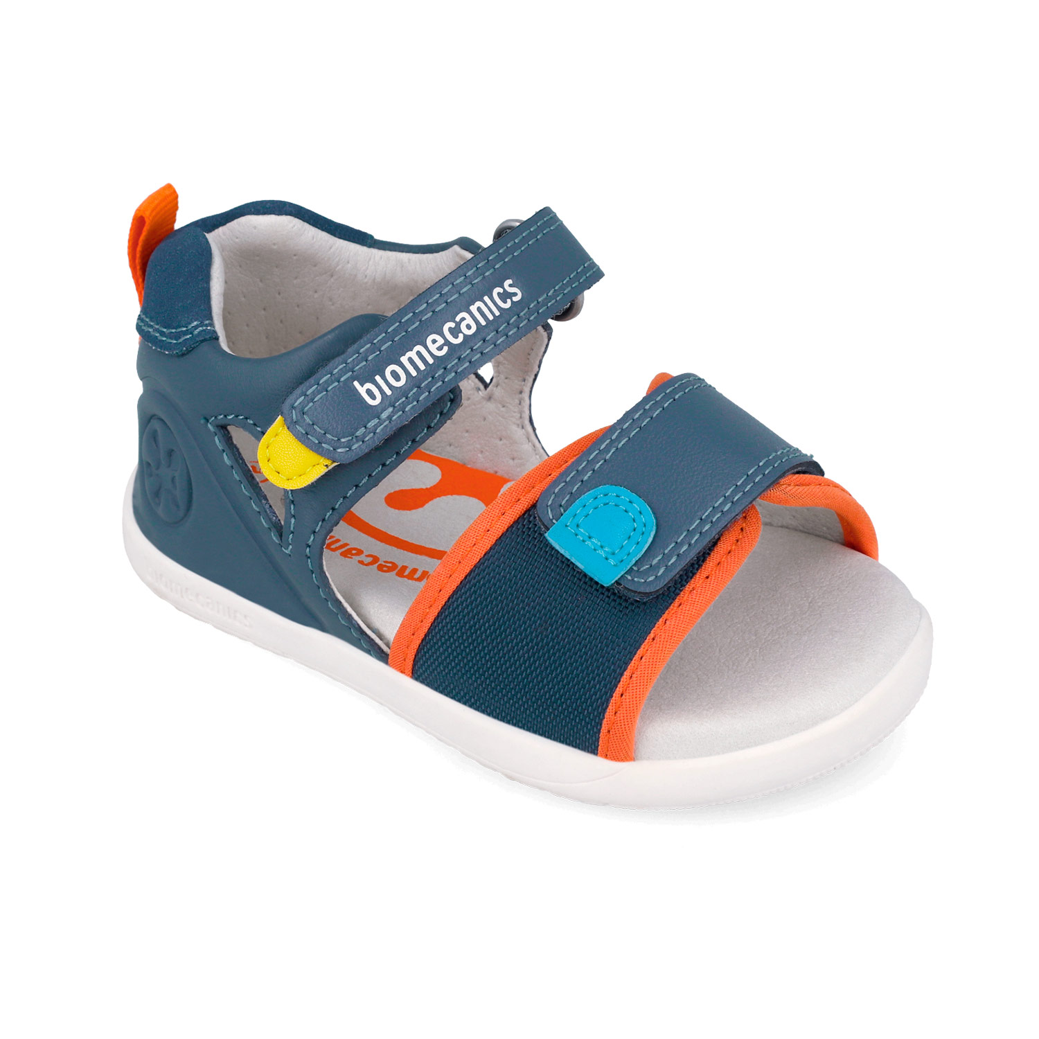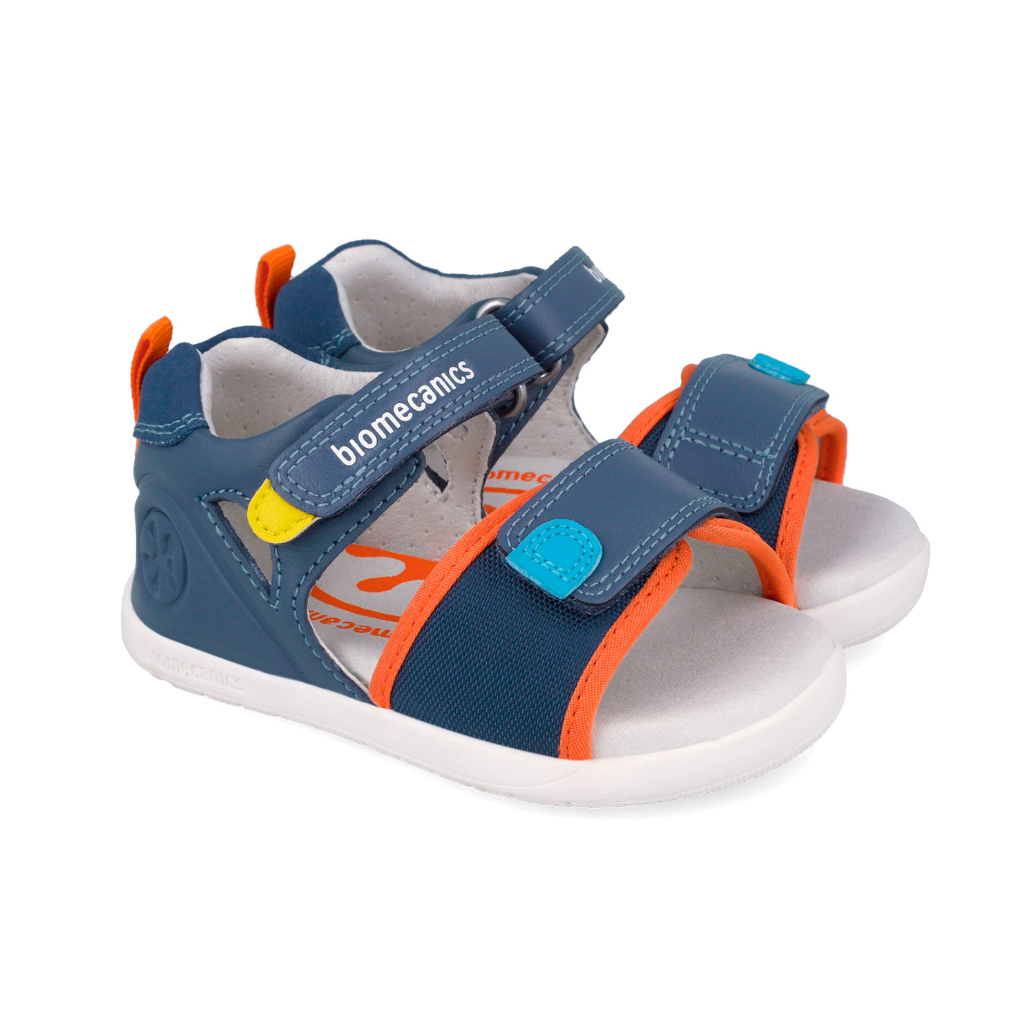 sandalia tonos blue y naranja deditos al aire