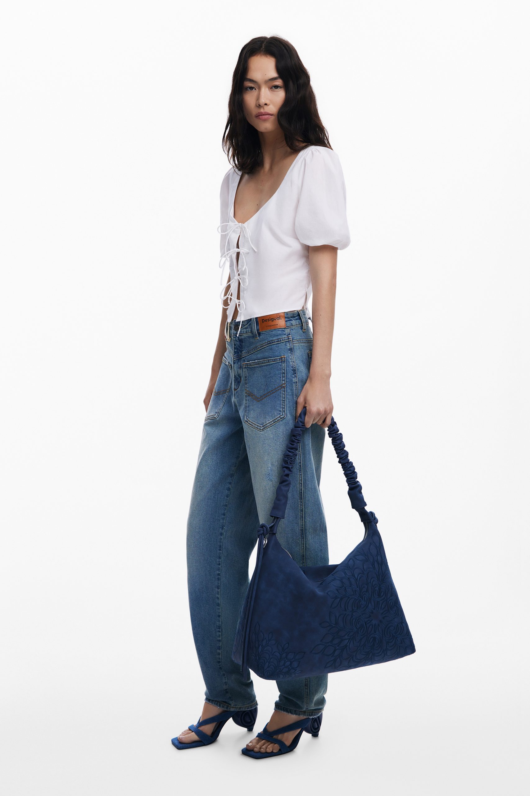 bolso apaisado color azul estilo vestir ideal oficina universidad