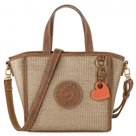bolso efecto rafia de fácil lavado con estilo natural color arena café