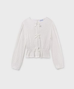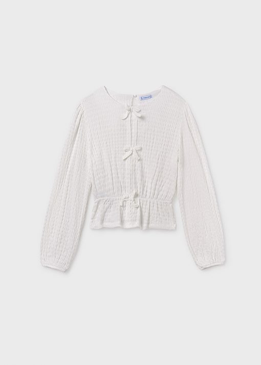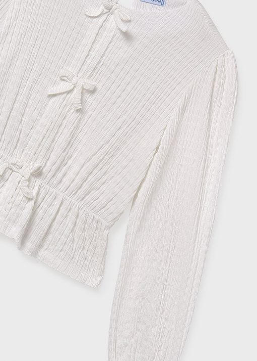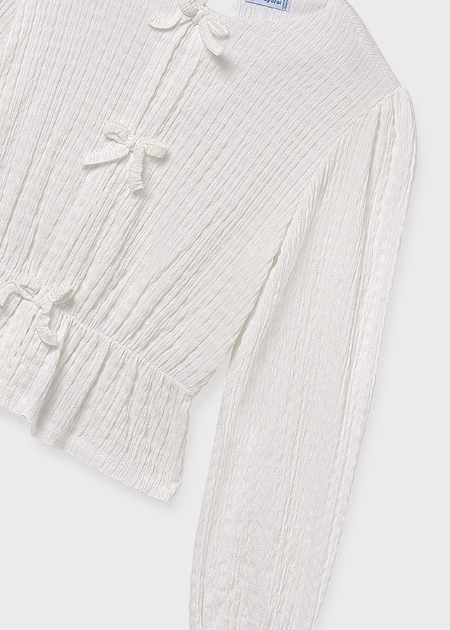 tejido punto plisado con lazos delanteros color nata