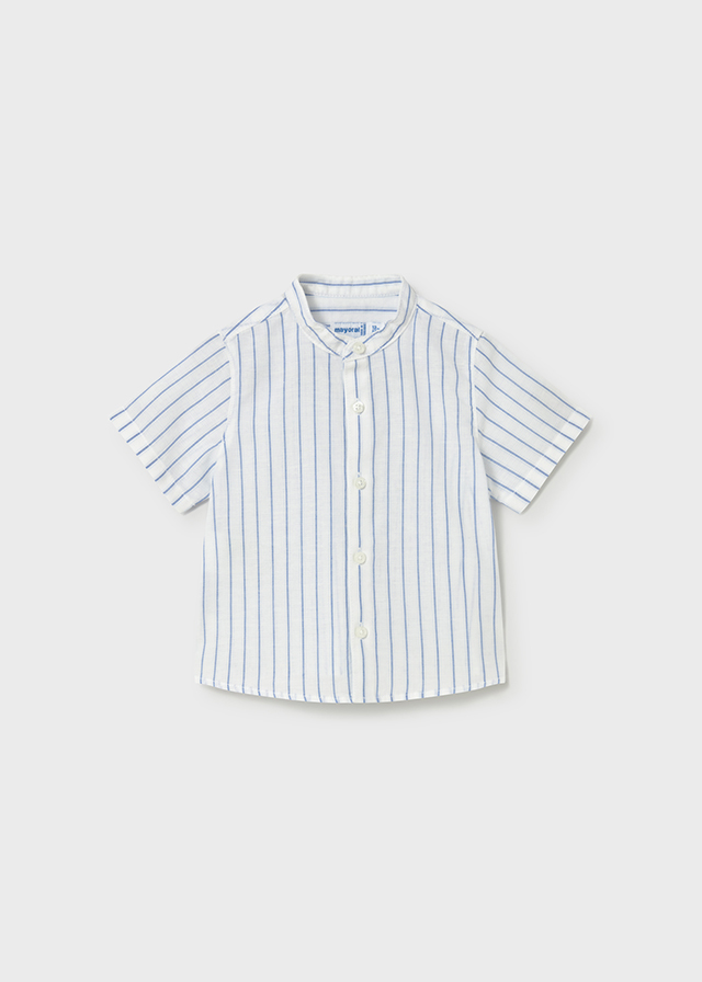 camisa lino rayas cuello mao color oceano