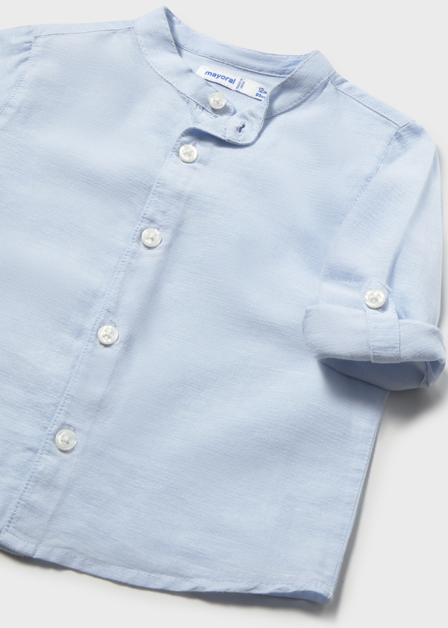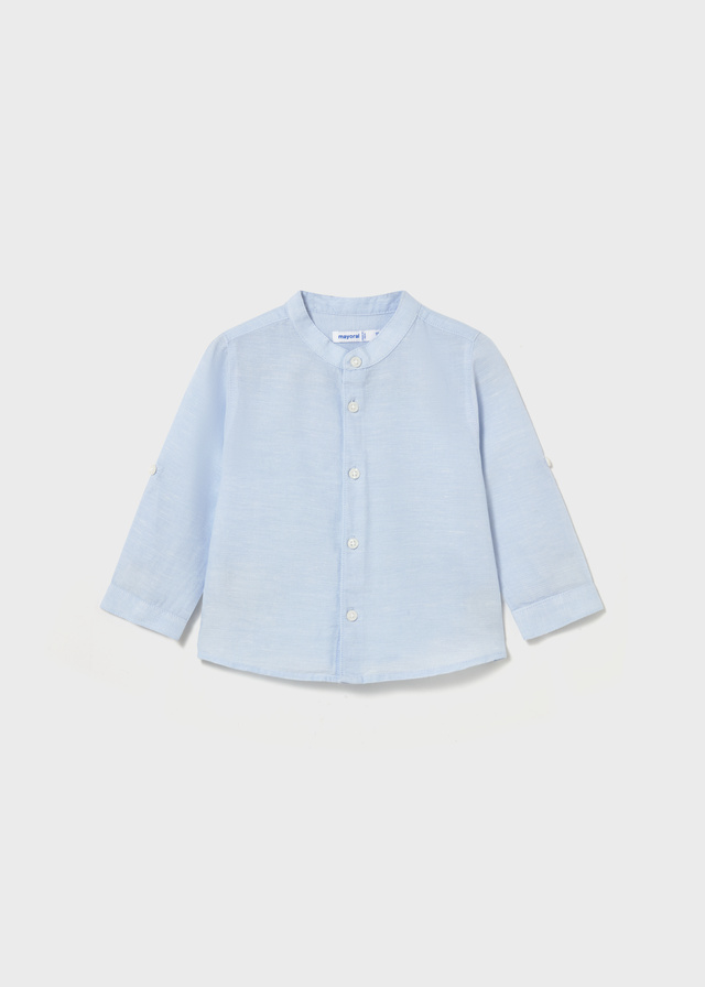 camisa vestir color celeste cuello mao manga larga con recogedor
