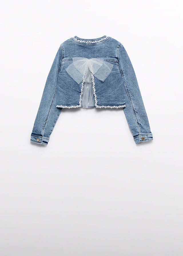 ribete en guipur y parte trasera en plumeti con lazo