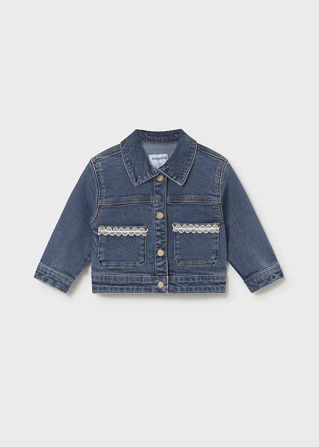 chaqueta color medio con encajes en bolsillos