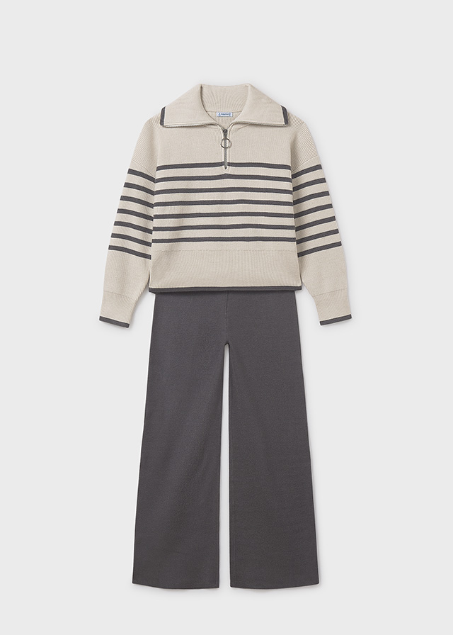 JERSEY SUPER SUAVE QUE CIERRA EL CUELLO CON CREMALLERA Y PANTALÓN ANCHO HILO PLOMO VIG