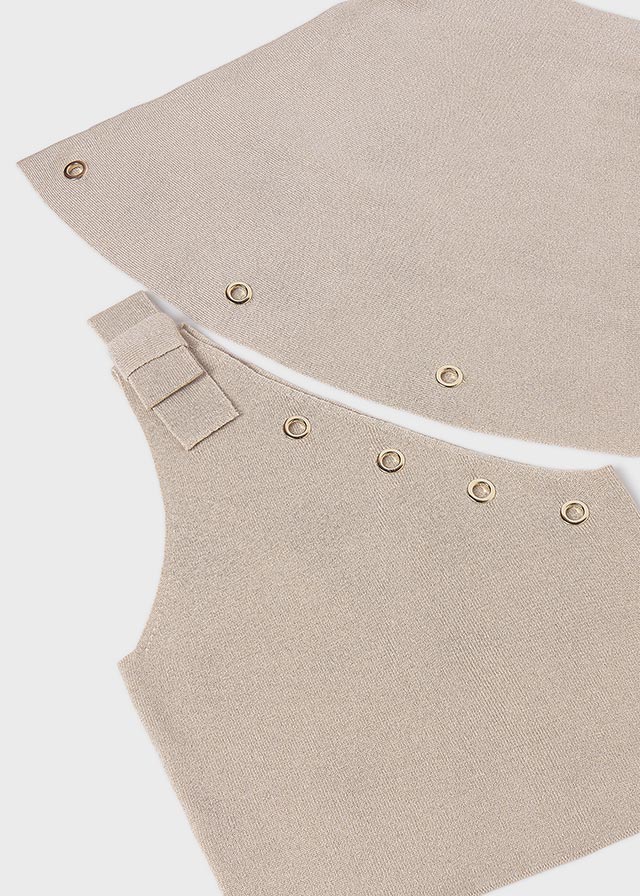 top y falda al tono color arena-oro con solo un tirante al hombro