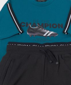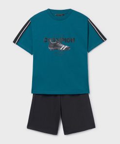camiseta color agua marina y bermuda negra simula goma del interior