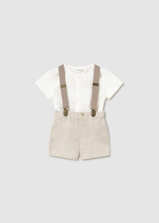 conjunto ceremonia color lino crudo con tirantes color café