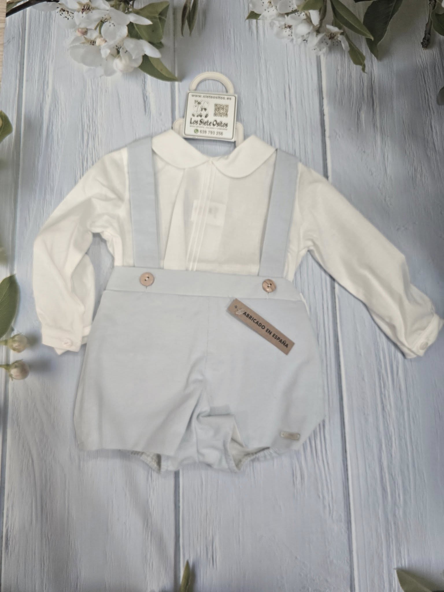 CONJUNTO PANTALON CORTO COLOR AZUL CELESTE CON TIRANTES AL TONO