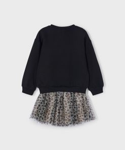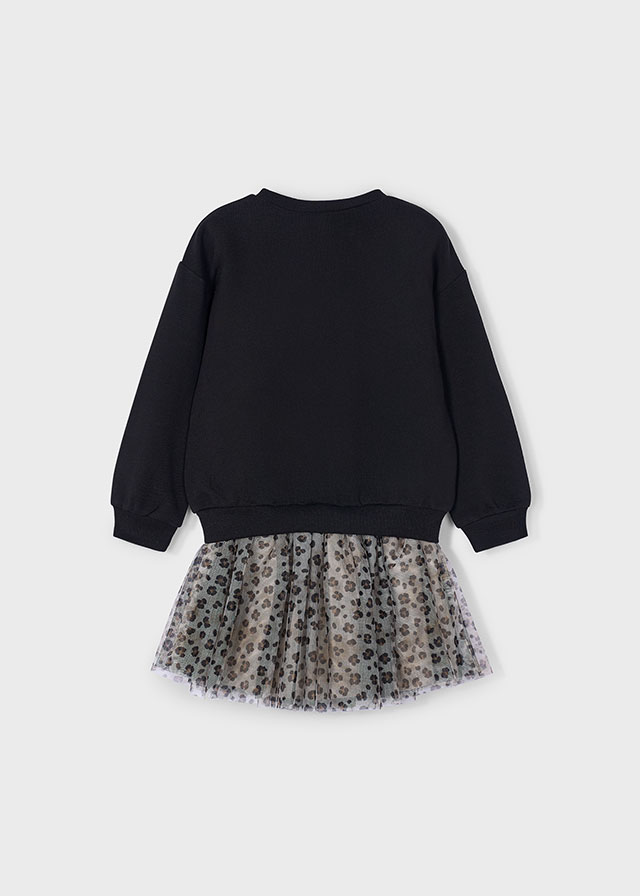 jersey negro con lazo en gasa en animal print a combinación con la falda