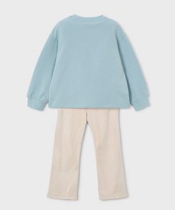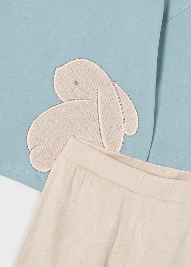 conjunto jersey verde lago con detalle conejito en tonos arena a juego con el pantalón