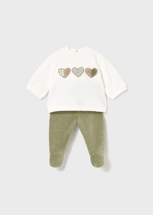 CONJUNTO EN TONOS BEIGE Y VERDE SUAVE