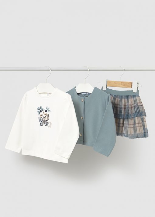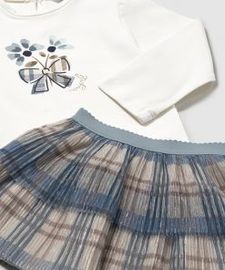 camiseta flores al tono y falda tul en tonos café y azul al tono