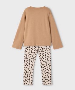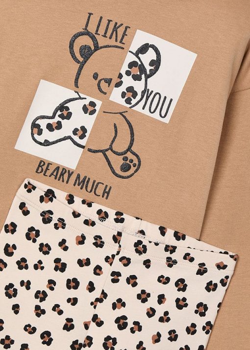 CAMISETA OSITO PURPURINA COLOR CAMEL Y LEGGINS ANIMAL PRINT
