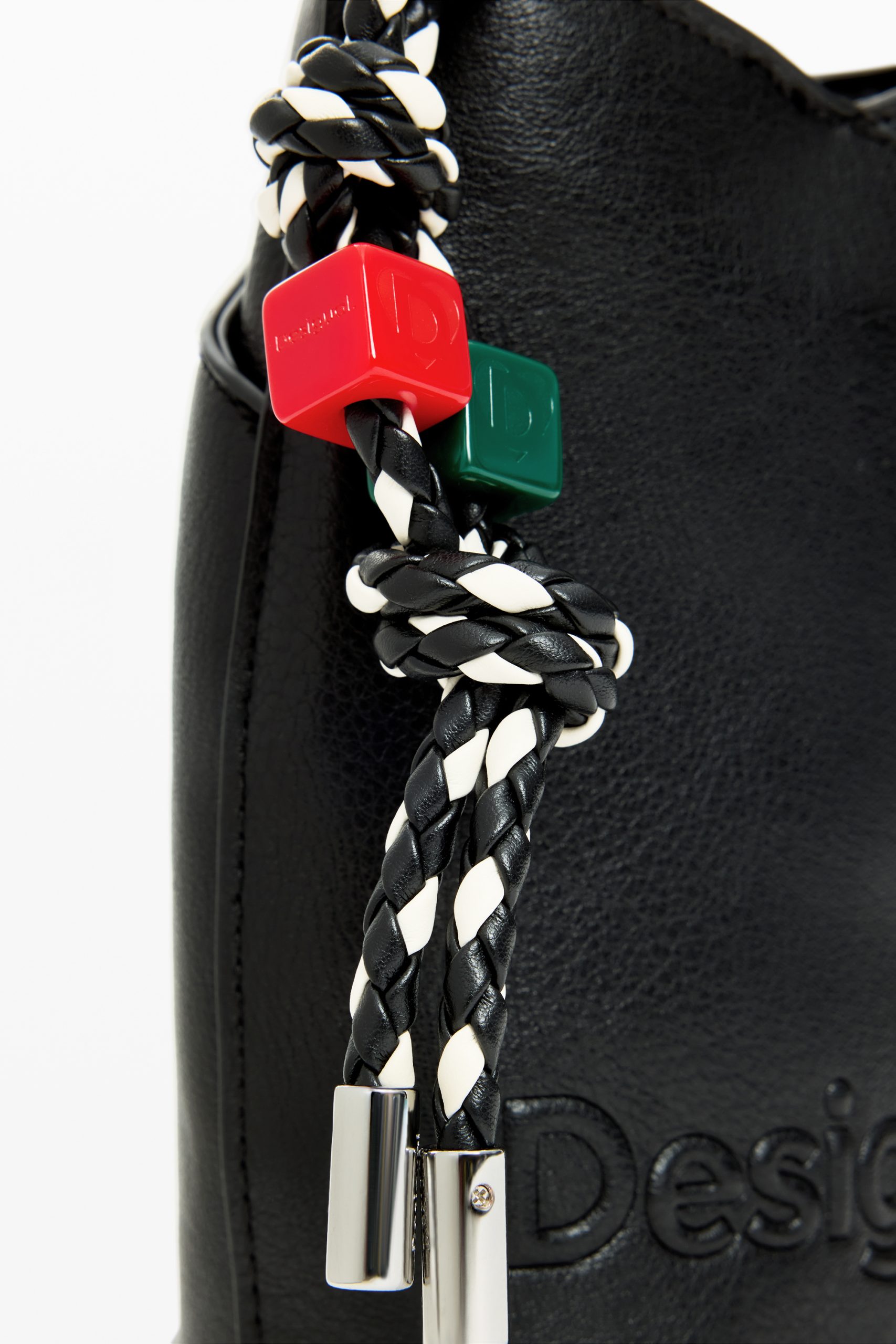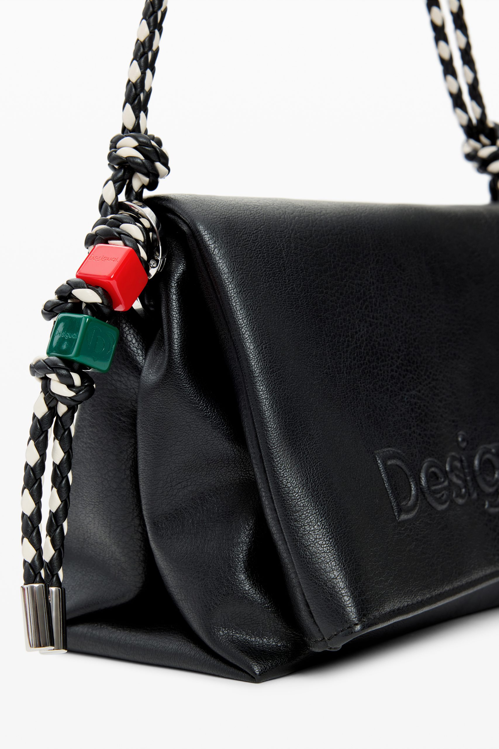 bolsos bandolera desigual con asa trenzada en blanco y negro
