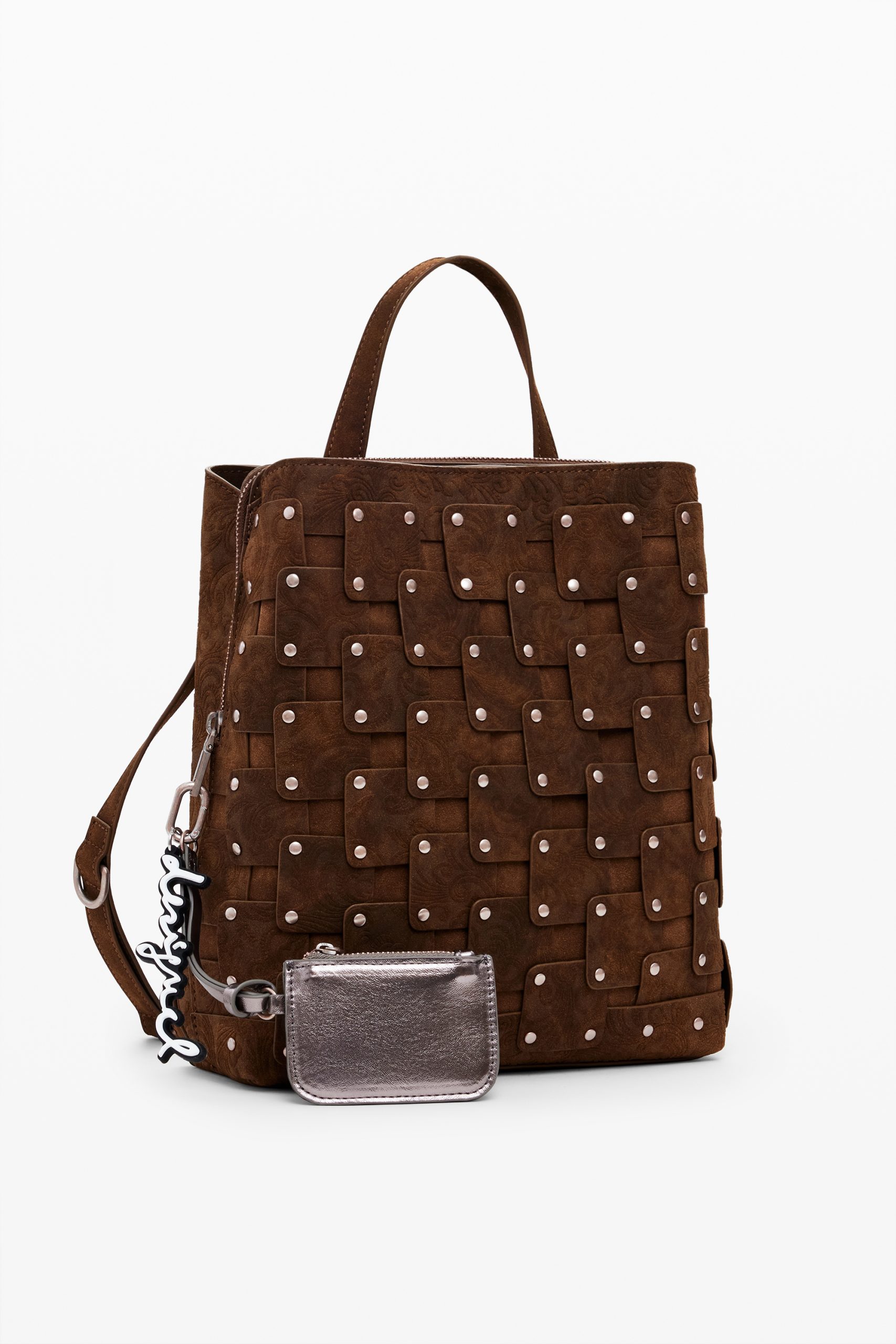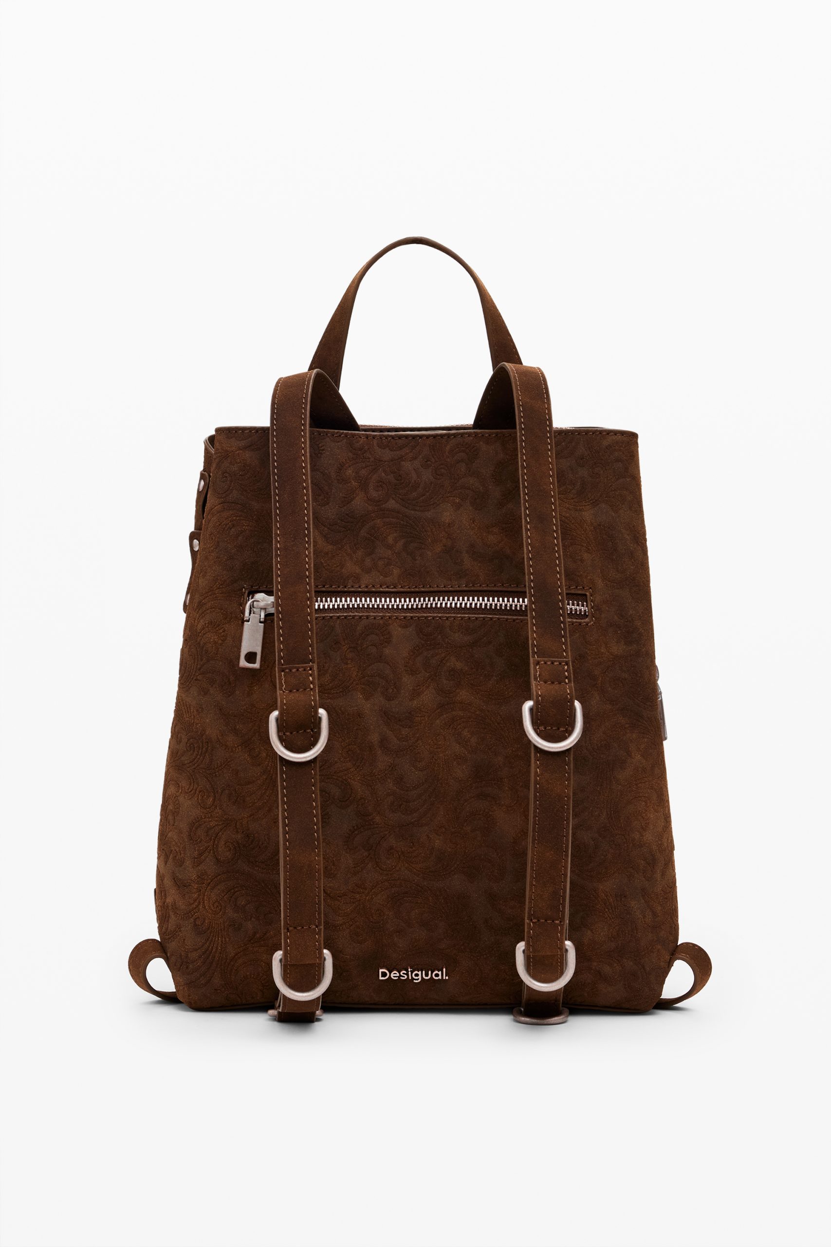 tres compartimentos y bolsillo trasero parte trasera tallada