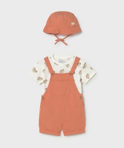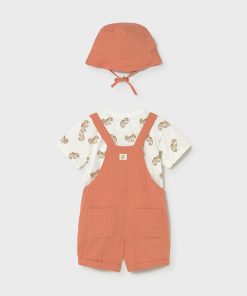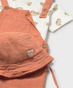 monito color arcilla con camiseta con botones hombro y gorrito