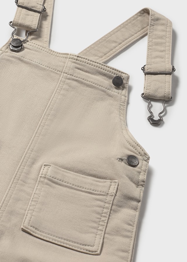 peto jeans de licra color arena con tiros ajustables y apertura entrepierna