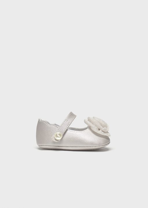 COLOR GRIS PERLADO PLATA CON FLOR EN GASA
