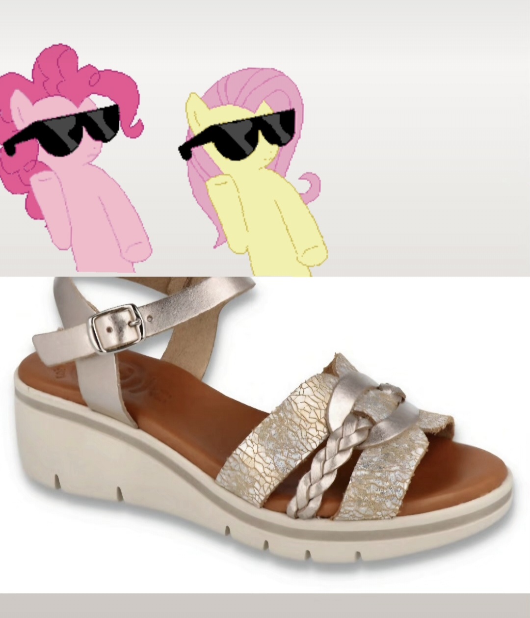 sandalia cuña lola canales super ligera en tono oro-plata trapeado cierre con hebilla