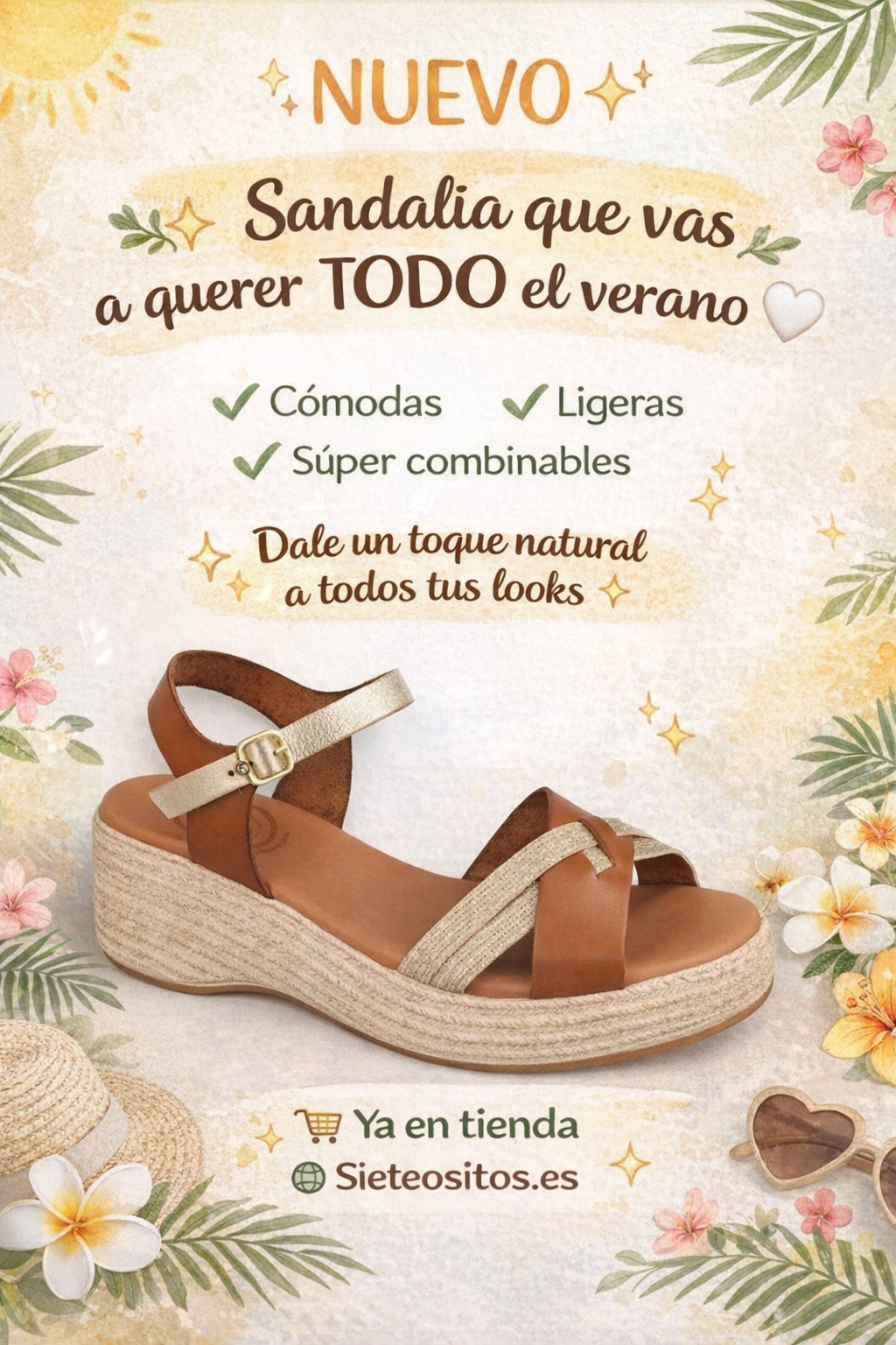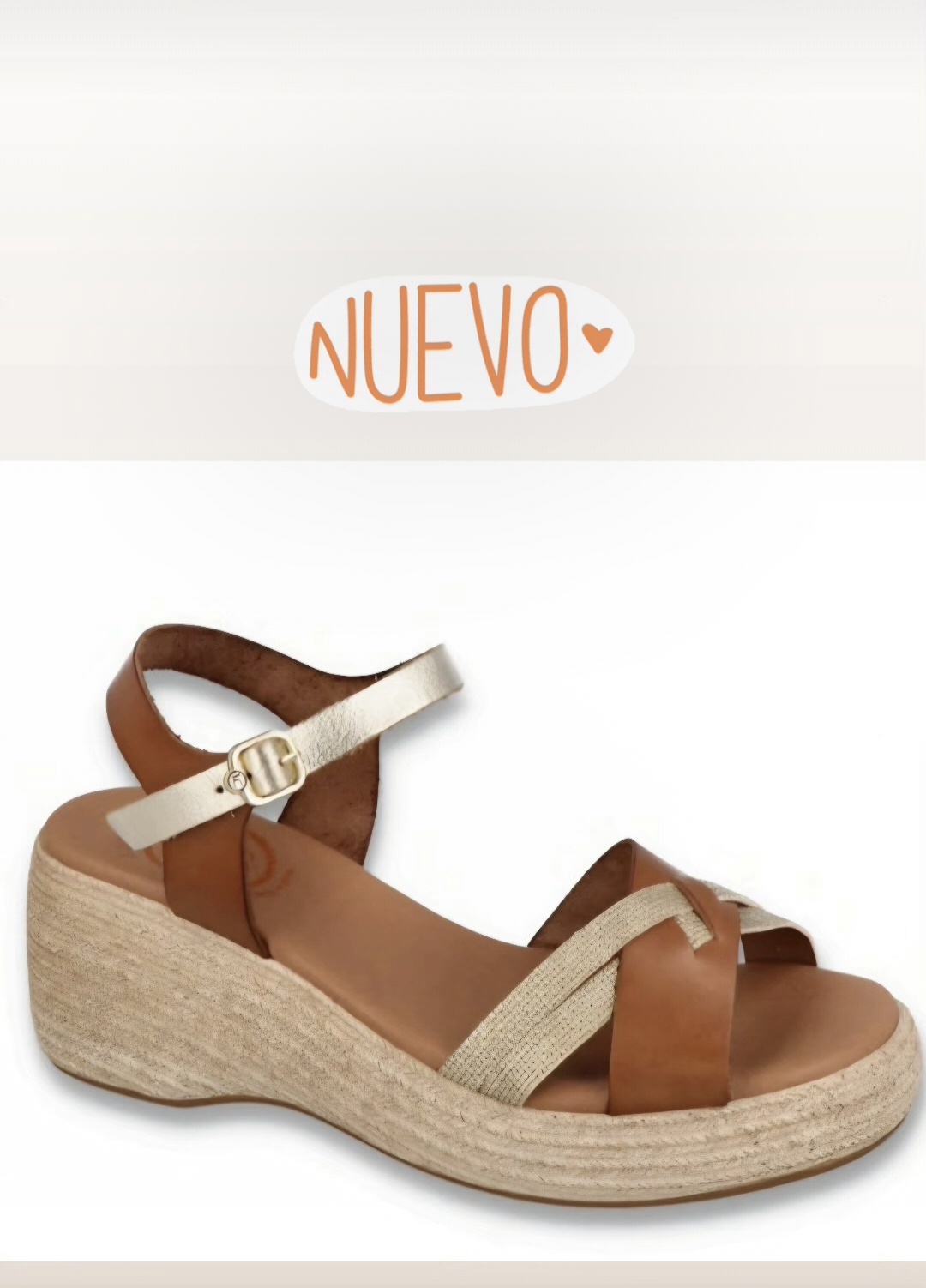 sandalia cuña efecto rafia lola canales super ligera en tono camel-oro