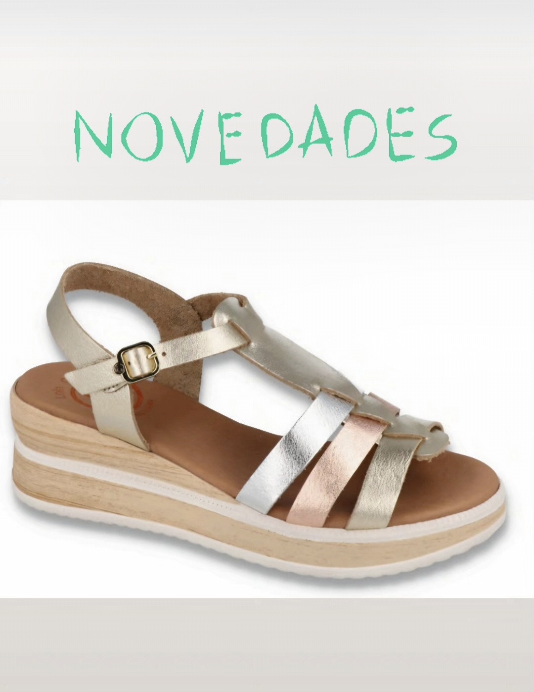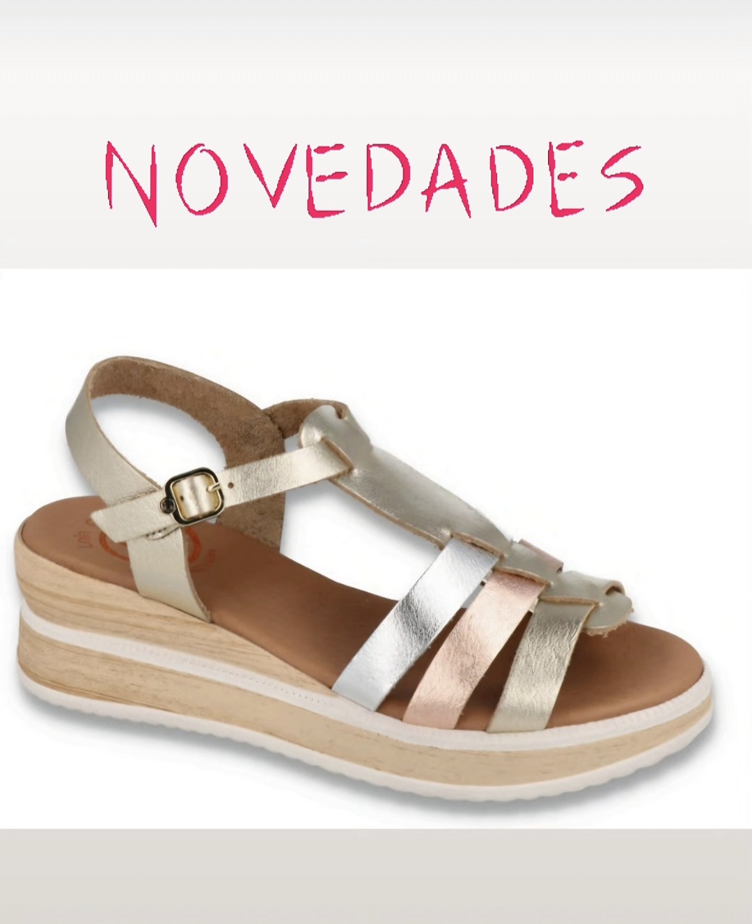 sandalia cuña lola canales super ligera en tono oro plata y ocre