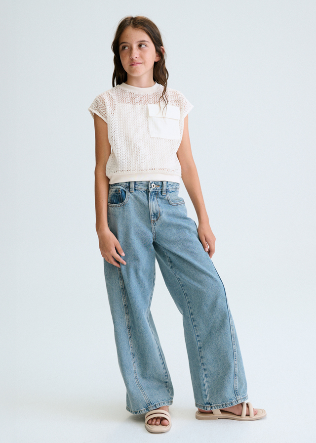 top en beige encaje con super bolsillo
