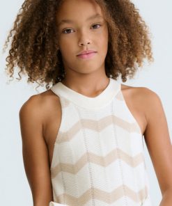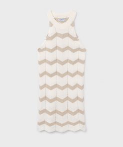 vestido vestir punto color crema con hilo suave oro