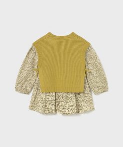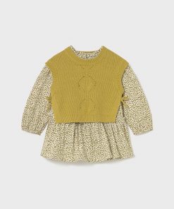 lindo vestido con flores pequeñas en tonos oliva manga larga