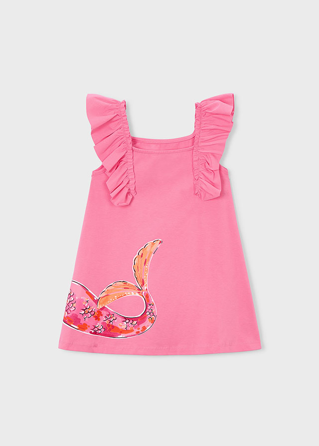 vestido color geranio con diseño lentejuelas mangas volantes